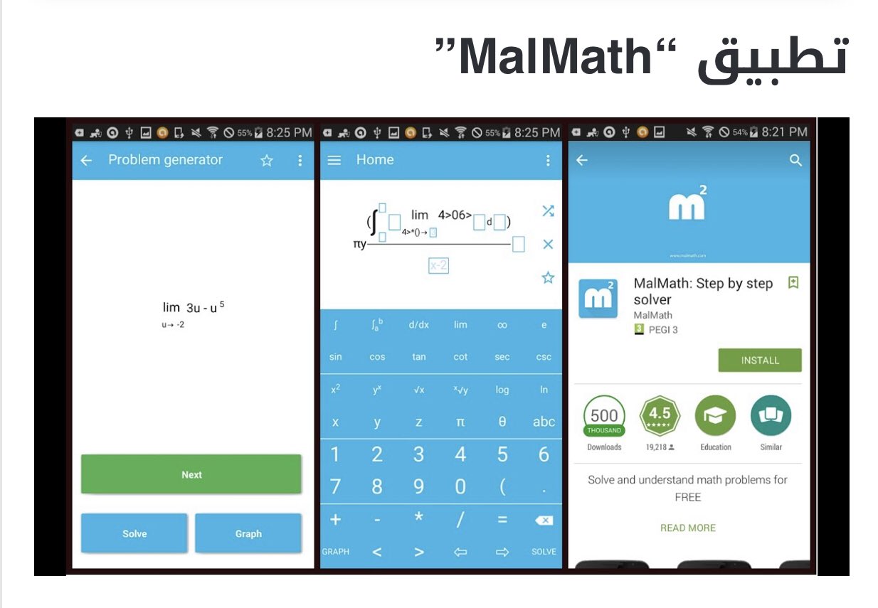 تطبيق “MalMath” سيساعدك على ذلك،حيث سيُريك خطوات الحل كاملةً، مهما كانت نوعية المعادلة المطلوب حلها،فهو يحل التكاملات بأنواعها، والاشتقاق وحساب اللوغاريتمات والمعادلات المعقدة والحسابات والجبر، ويعرض لك نتيجة الحل وتمثيله البياني أيضاً.